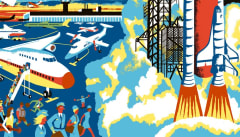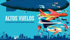 Este libro desplegable se convierte en una impresionante panorámica de 136 cm en la que se detallan la historia y los mitos del vuelo, desde los legendarios intentos de Ícaro por alzar el vuelo a las revolucionarias innovaciones de la época de los reactores. En la cubierta con la que se envuelve hay textos explicativos relacionados con cada panel en los que se detallan los grandes hitos de la historia de la aviación.