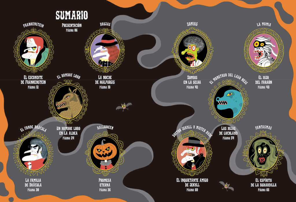 Descubre a los personajes más conocidos del terror enfrentándote a ellos junto con los protagonistas de estos relatos. Visita a Frankenstein en su escondite, aprende a protegerte de las brujas, sorprende al terrible hombre lobo y resuelve el secreto de la momia. También te invitamos a entrar en la mansión de Drácula, a vivir una inquietante noche de Halloween y a sumergirte en los dominios del monstruo del lago Ness. Además, podrás conocer el espantoso caso del Doctor Jekyll y Míster Hyde, experimentar el caos de los zombis y las noches con fantasmas. Son relatos de los cuales no podrás huir, porque antes deberás resolver un perqueño enigma oculto en cada historia.