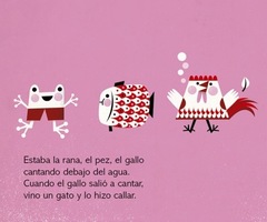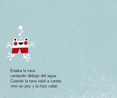 Variación de la canción popular “Estaba la rana debajo del agua”. Con este libro, los niños podrán relacionarse con una canción que los hará entonar, repetir y memorizar, permitiéndoles desarrollar una experiencia de lectura desde sus primeros meses de vida. Es una invitación a madres, padres, familiares y educadores a crear un vínculo afectivo con el bebé, a través de este libro.