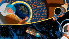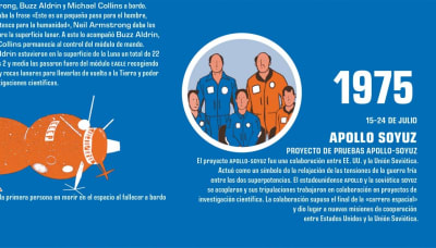 Un acordeón que aborda los acontecimientos de la carrera entre EE. UU. y la URSS por llegar al espacio exterior durante la Guerra Fría.