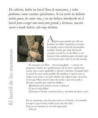 Un relato para imaginar las historias del joven Jim, el pirata Long John Silver, la goleta Española y los demás personajes de la célebre novela de Stevenson, en una adaptación de Andrea Rauch para esta versión ilustrada inédita.