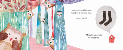 Los animales de este libro se divierten cantando y jugando en el bosque. Pueden hacerlo, mientras el lobo no esté. Y es el mismo lobo quien se encarga de decir que por el momento está ocupado: poniéndose el chaleco, los pantalones, los calcetines…