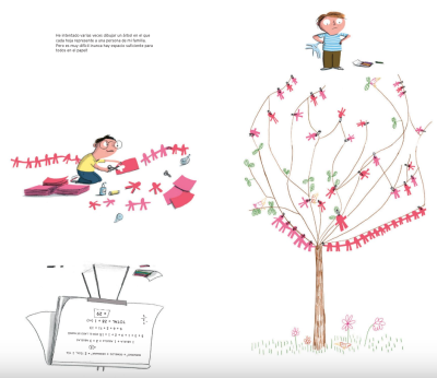 Encontramos medio hermanos y medio hermanas, primos que viven al otro lado del mundo o que ni siquiera han llegado al mundo, tíos en formato mini, un padre que creció con dos madres, un Abu Esquí campeón en todas las categorías… En fin, una superfamilia enmarañada ¡que va que va creciendo y creciendo a través de las páginas!