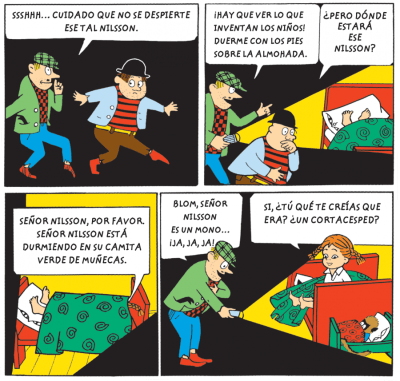 Este volumen, en formato cómic, es el segundo de una colección que pretende acercar, a los primeros lectores, al extraordinario personaje de Pippi, la niña más fuerte del mundo.