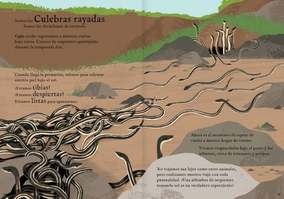 La migración de los animales es un tema que ha fascinado a los científicos de todas las épocas. Y en este libro se presentan pequeñas historias de viajes increíblemente grandes de las ballenas, las aves, los elefantes, las mariposas, las tortugas y varios animales más. Toda su vida la pasan nadando, volando y caminando por el planeta. Texto e ilustraciones se complementan muy bien, creando un libro de no ficción de gran belleza.