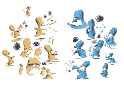 Como en un juego de significados, el título parece nombrar a estos dos personajes, aunque en realidad, sea el nombre dos célebres batallas europeas. Este libro muestra con ingenioso humor la ridiculez de la guerra, su universalidad y atemporalidad.